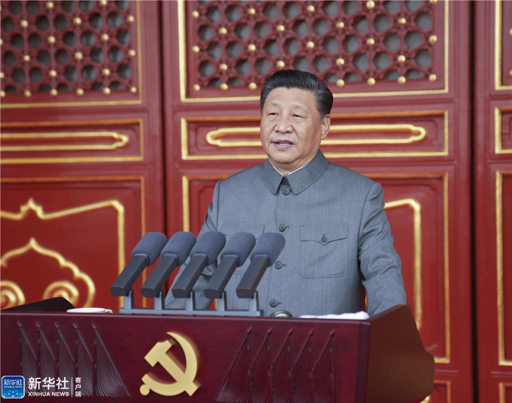 7月1日上午,庆祝中国共产党成立100周年大会在北京天安门广场隆重举行。中共中央总书记、国家主席、中央军委主席习近平发表重要讲话。新华社记者 鞠鹏 摄